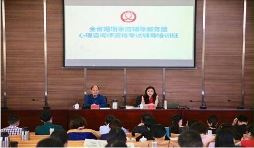 为进一步提升全省婚姻家庭辅导工作水平和服务能力,全面推进全省婚姻登记机关规范化、标准化建设,2017年10月8日至15日,全省婚姻家庭辅导服务暨心理咨询师资格考试辅导培训班在杭州举办。各市民政局社会事务处处长及婚姻登记工作业务主管人员,全省各婚姻登记机关部分负责人、婚姻登记员约110人参加了培训。