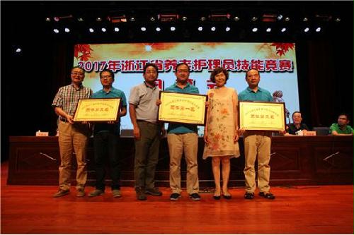 8月24—25日, 浙江省第六届养老护理员技能竞赛在绍兴举行。全省共有12支代表队总计48名选手参加本次竞赛,经过两天紧张的比赛,绍兴市、杭州市、宁波市代表队分别获得团体奖第一、二、三名;车之烨、郑静、任智艳、孙红美分别获得个人综合成绩前四名,他们四人将代表浙江省参加全国护理员大赛。