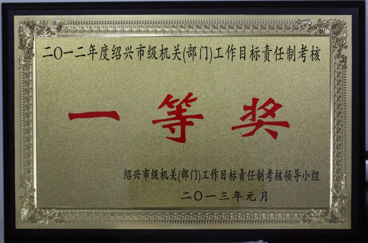 2012年度绍兴市级机关(部门)工作目标责任制考核一等奖