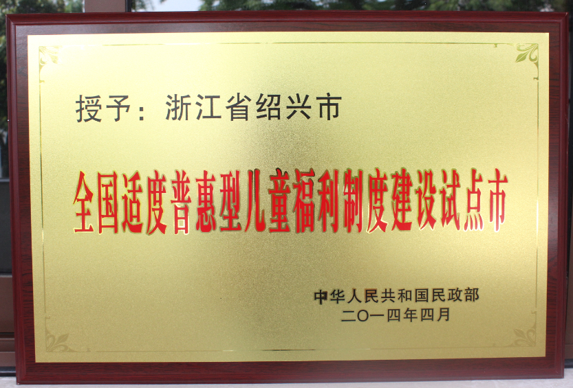 民政部授予浙江省绍兴市全国适度普惠型儿童福利制度建设试点市