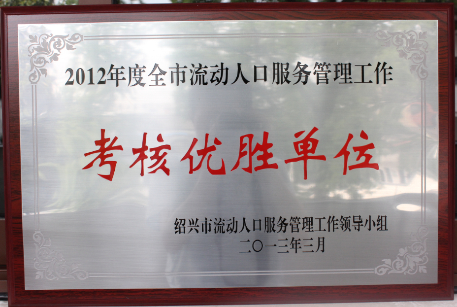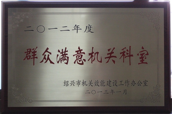 2012年度绍兴市级机关(部门)工作目标责任制考核一等奖